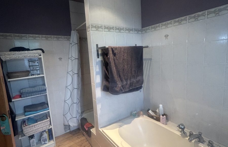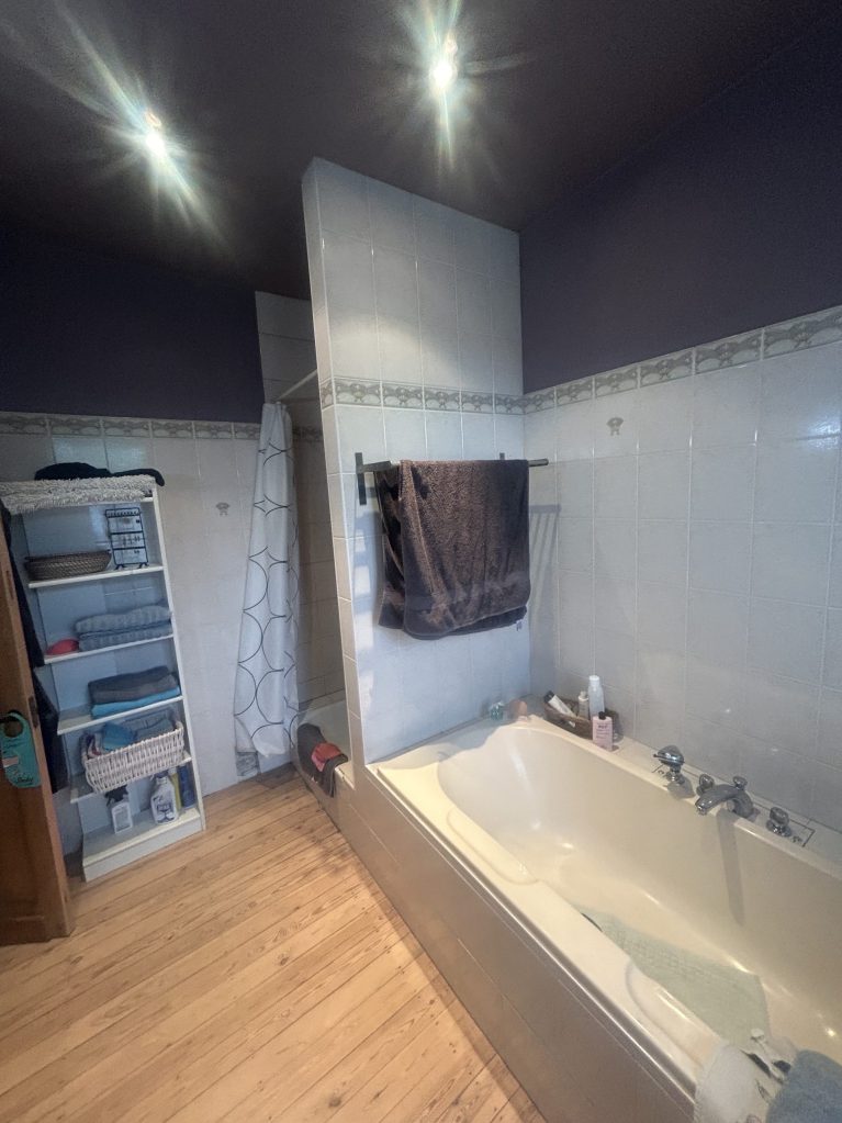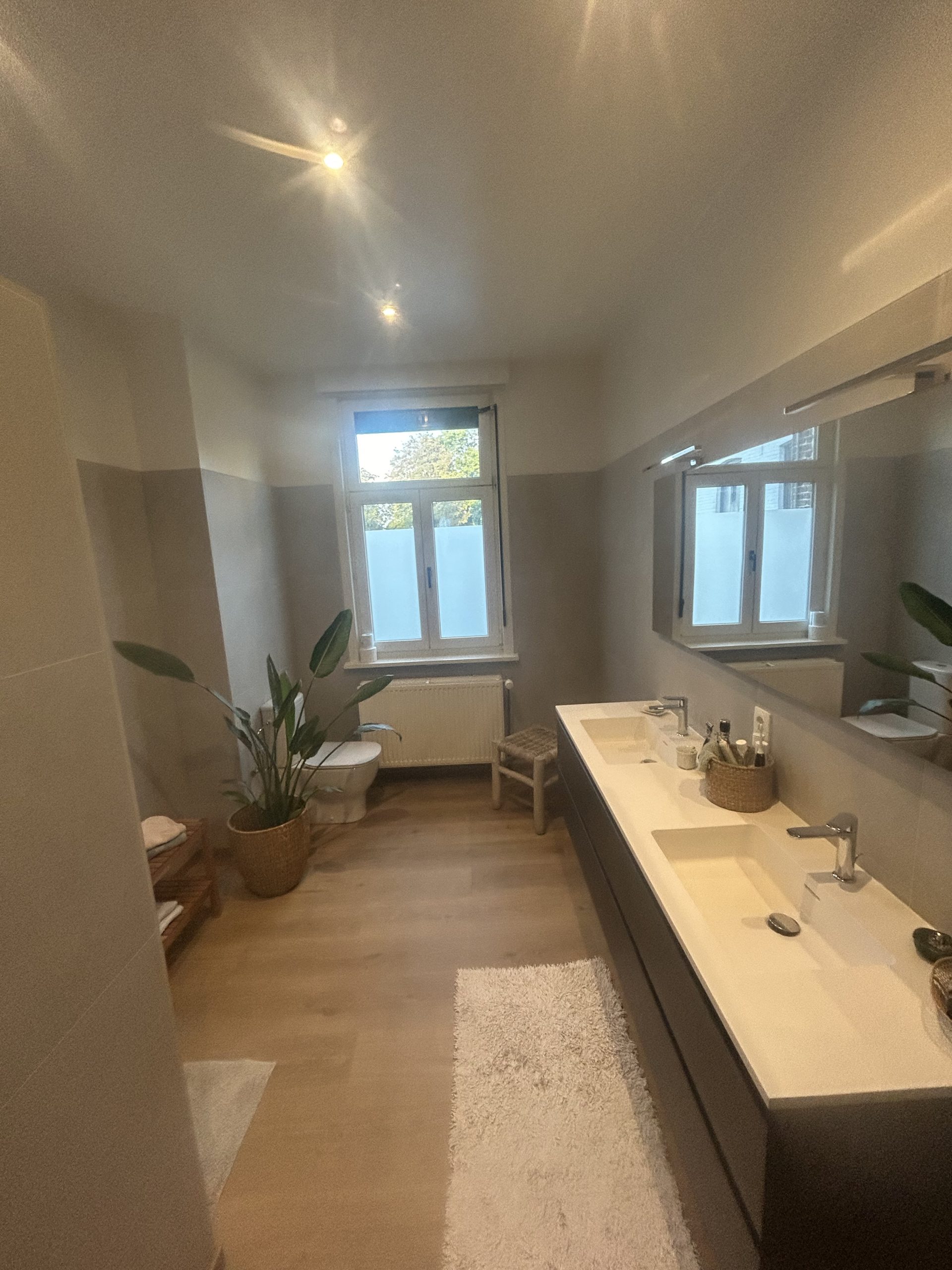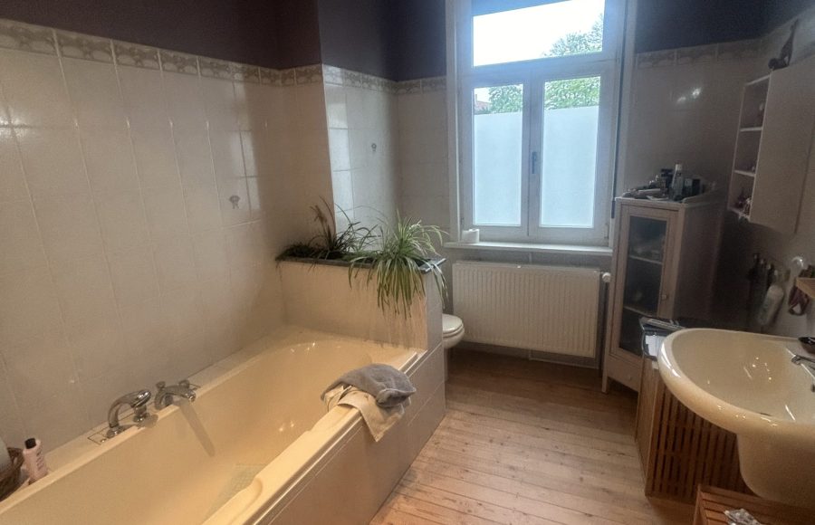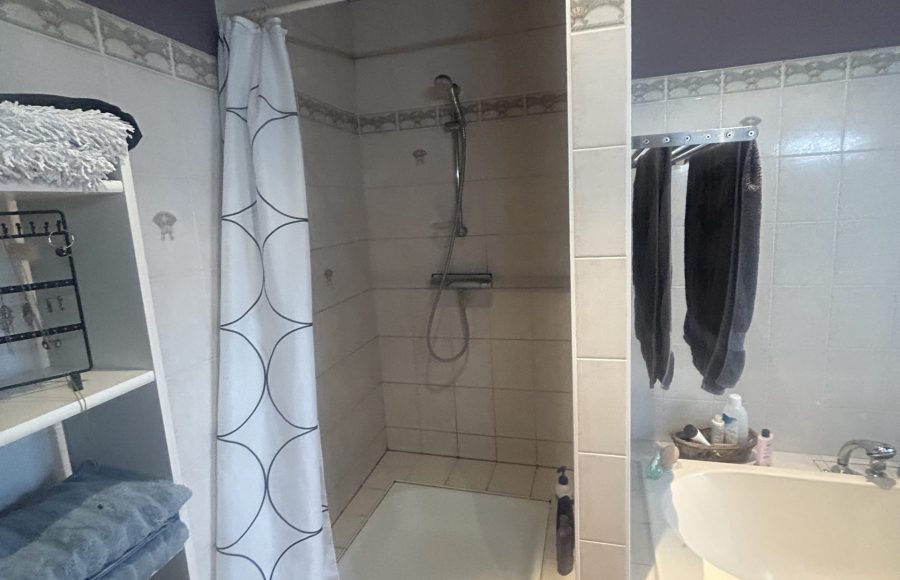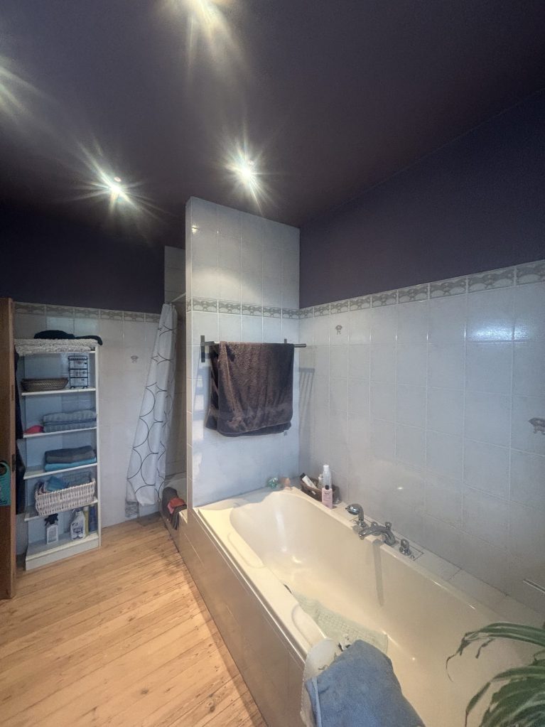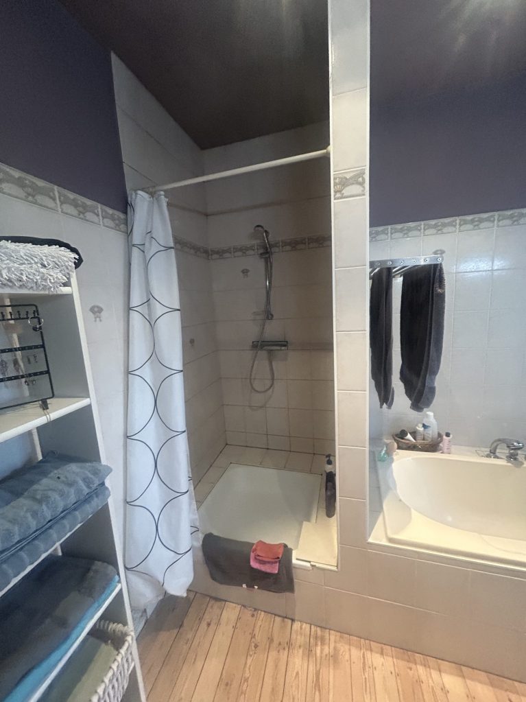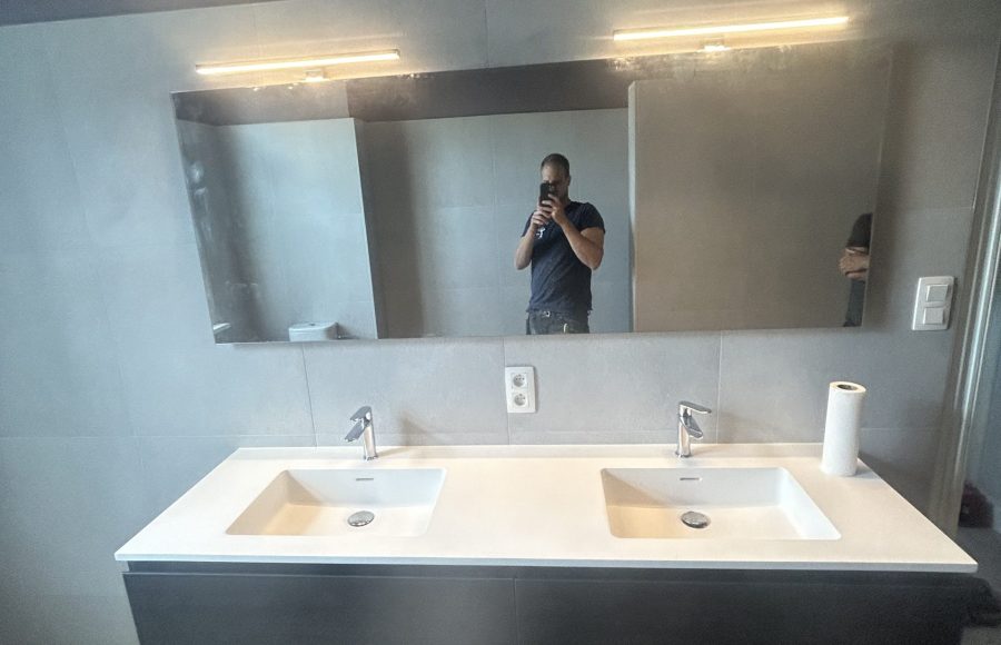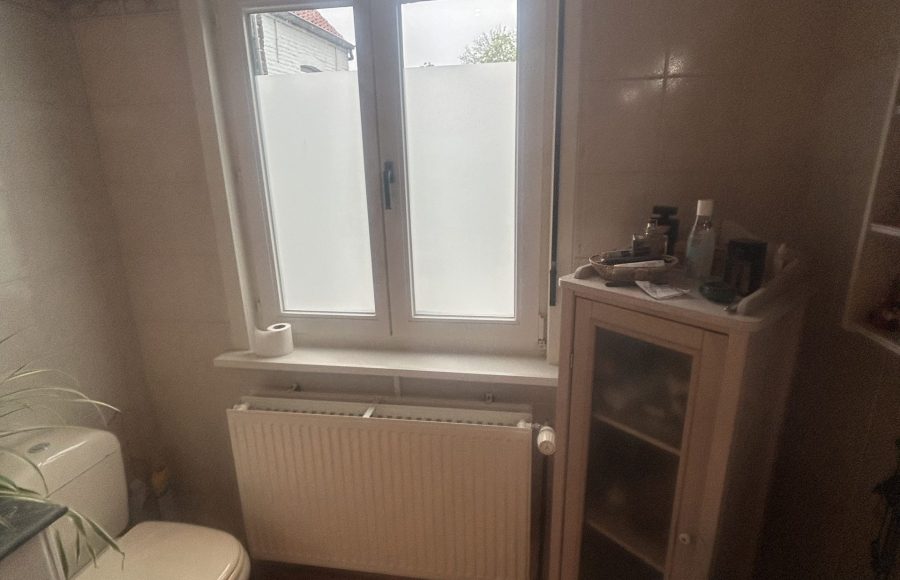 Een project te Kaprijke. Woning is houtskelet en er werd geopteerd voor een vinyl-vloer. De Douche werd uitgevoerd met een vaste wand bestaande uit tegels.