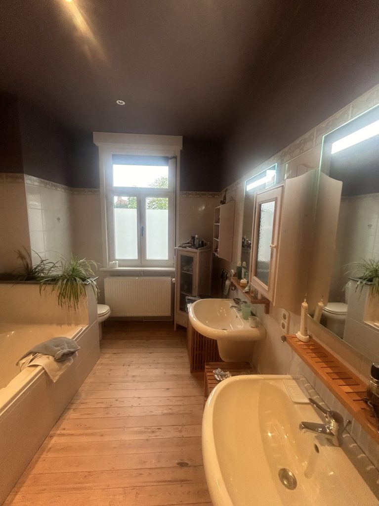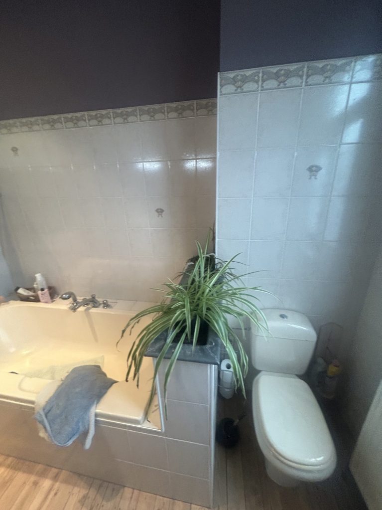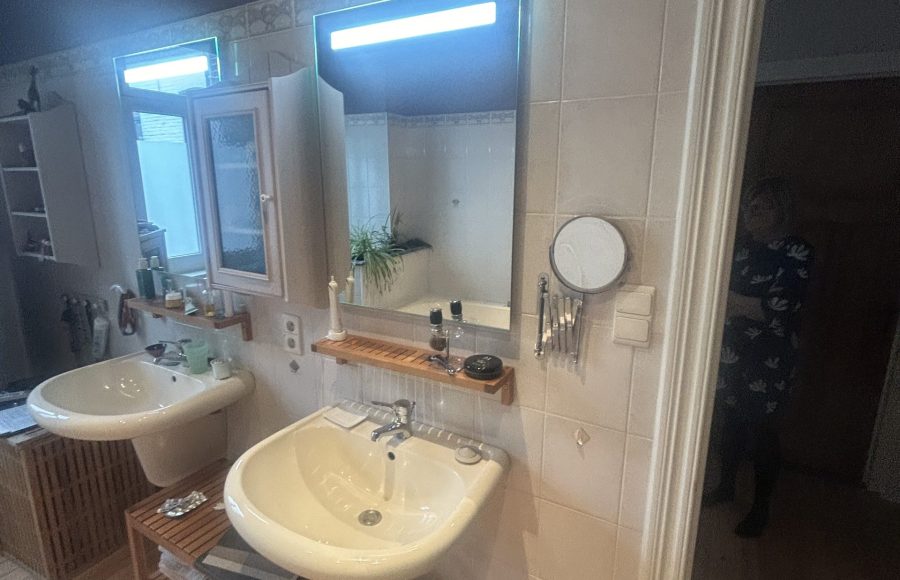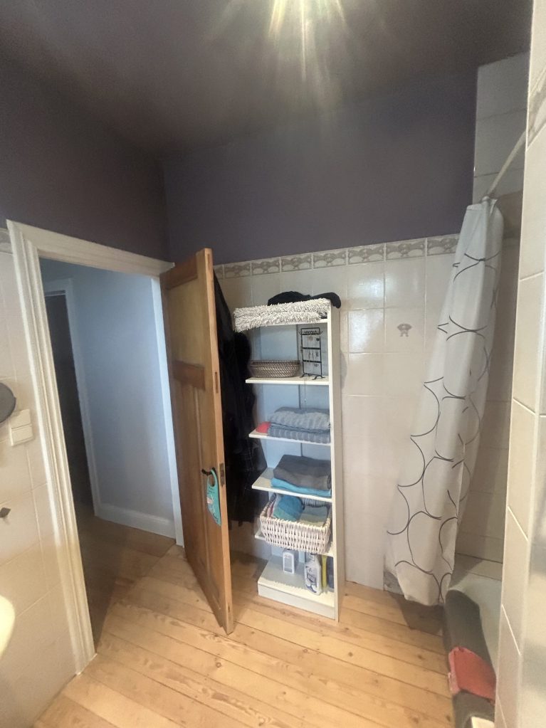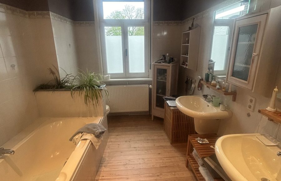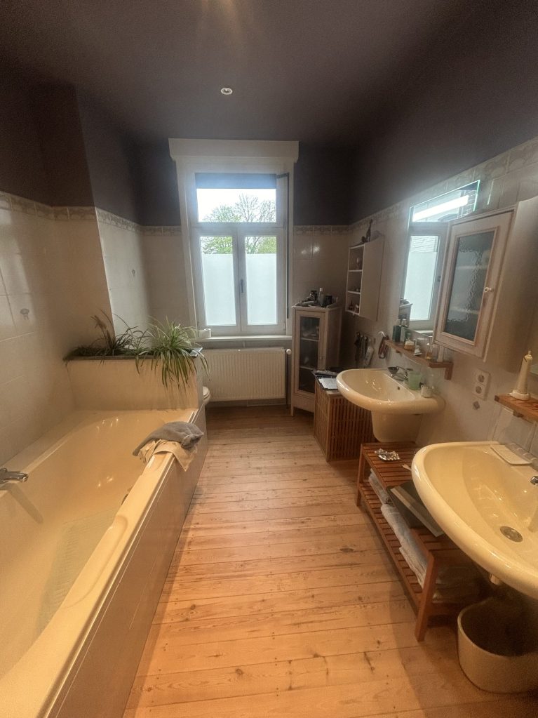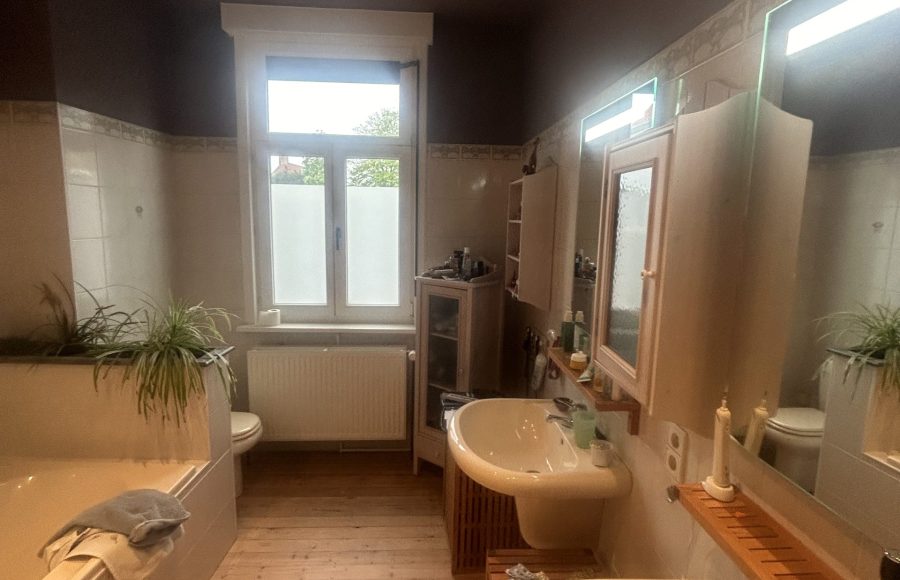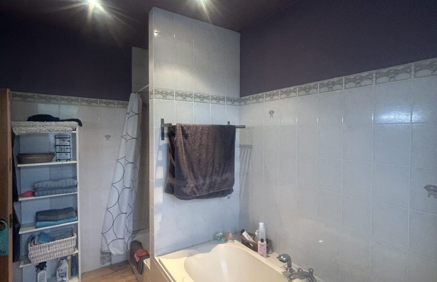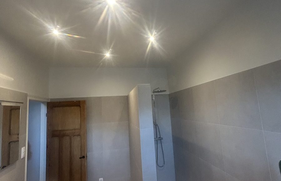Een project te Kaprijke. Woning is houtskelet en er werd geopteerd voor een vinyl-vloer. De Douche werd uitgevoerd met een vaste wand bestaande uit tegels.